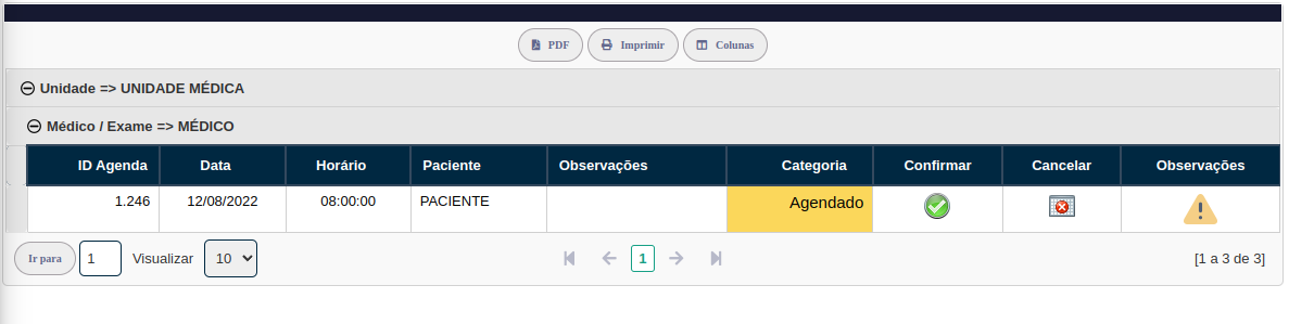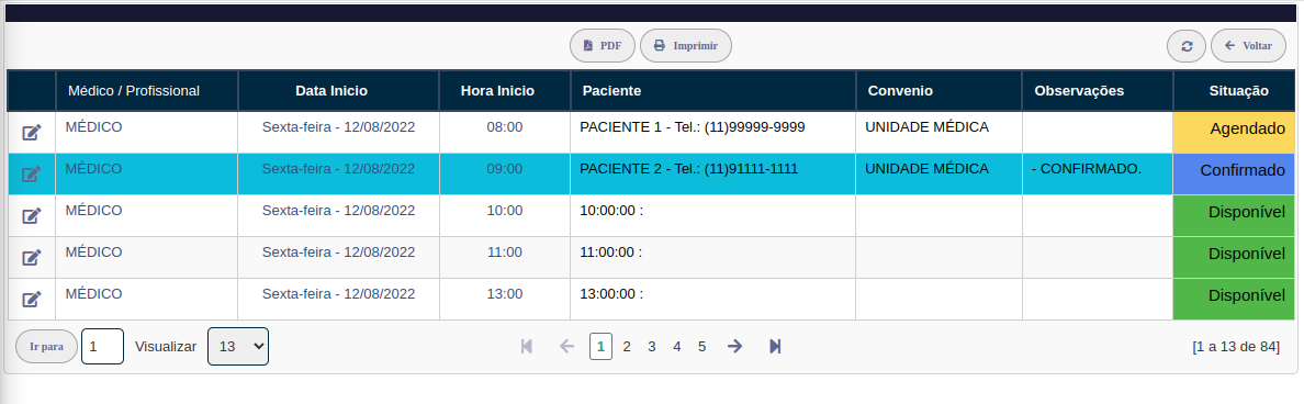 Após realizar a confirmação a situação passará para Confirmado. Caso precise cancelar um agendamento, informe o motivo e o horário ficará disponível.