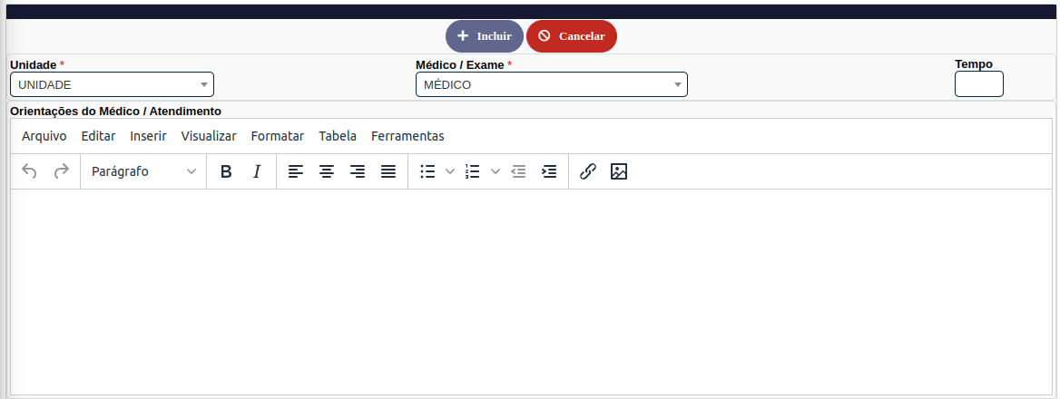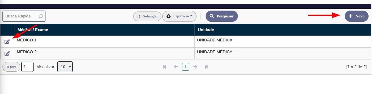 Clique no botão Novo para adicionar um novo horário médico ou Editar para editar um horário já existente.