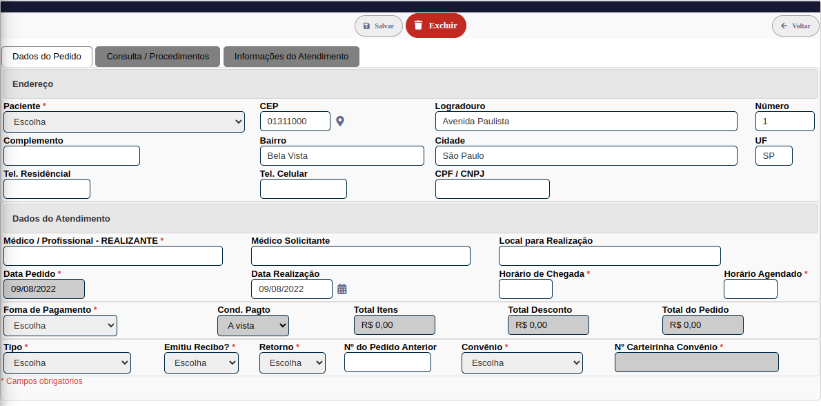 Pedido Consulta / Procedimento